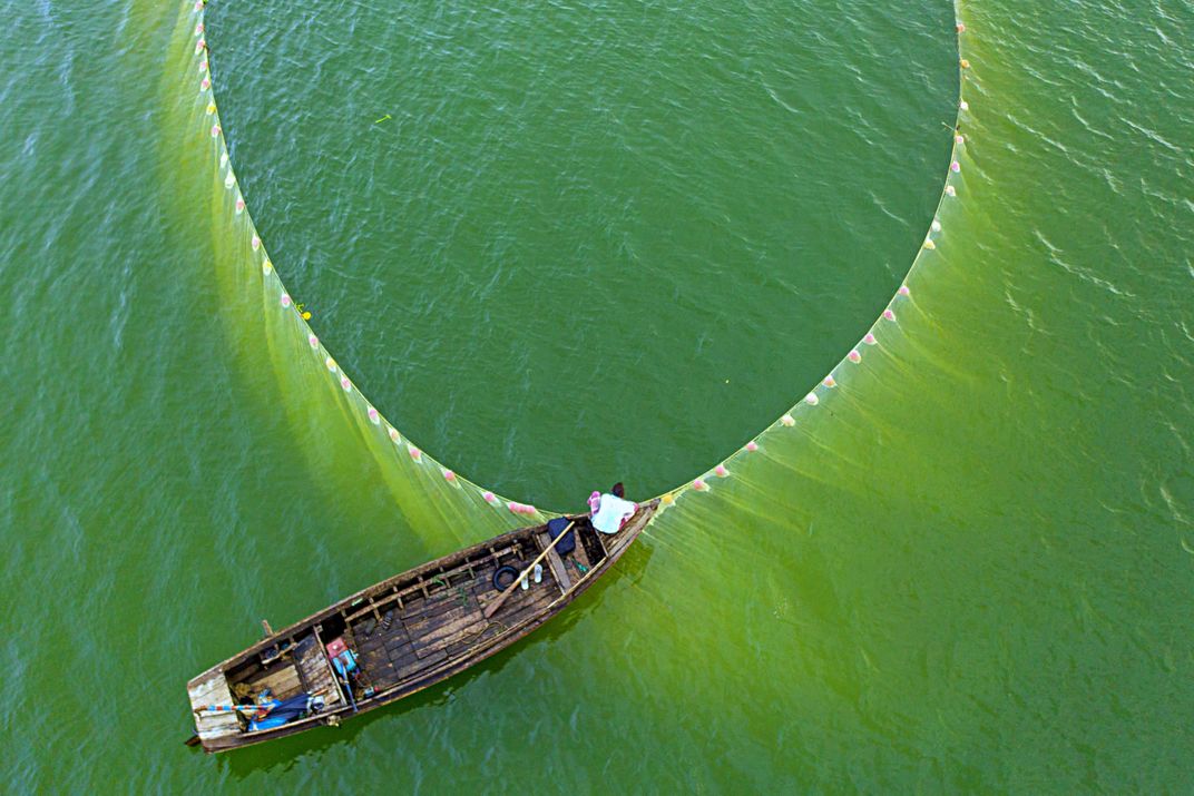 Kaptai lake is a picturesque freshwater lake located in rangamati district of Bangladesh surrounded by green hills and dense forests. Its home to several indigenous tribes who make their livelihood by fishing in the lake using traditional boats and colorful nets. the local tribal found fishing in the early morning or late afternoon while the fishes are almost active. When they row their boats across the calm waters like half moon , the bright color of their nets create a striking contrast against the serene natural backdrop.
