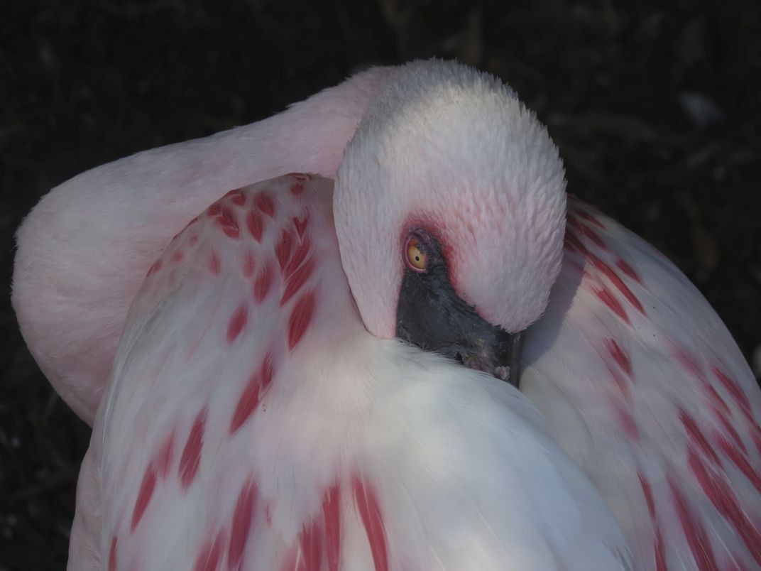 Flamingo preening.