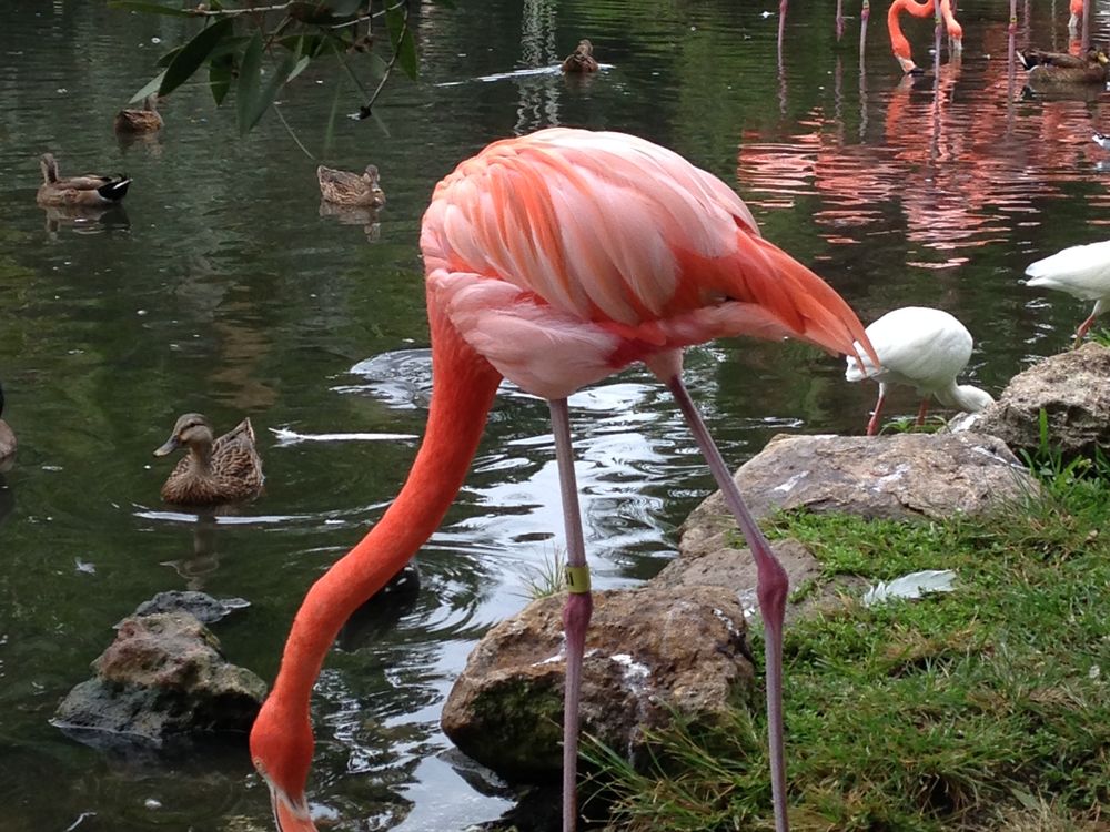This image was taken near a pond where the flamingos and other birds gather at the Jungle Gardens.