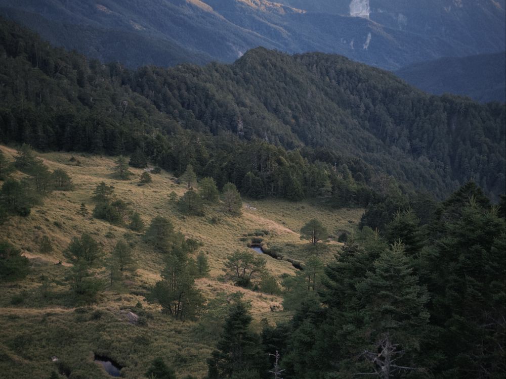 A quiet river moves gently between the mountains and forests, holding the colors of the sky on its surface. Trees stand along the river, their shadows touching the flowing water. A soft breeze passes through the leaves, creating a calm rhythm. In this moment, nature feels slow and peaceful, forming a simple yet beautiful scene.
