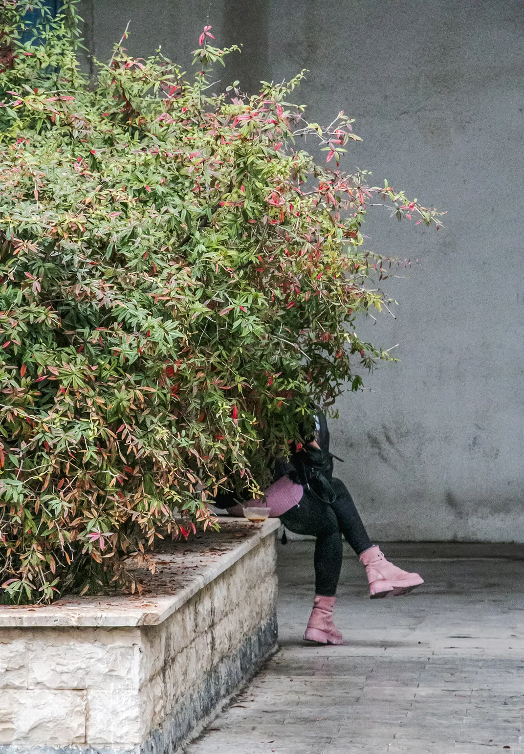 A girl on the street behind a flower bush caught my eye.