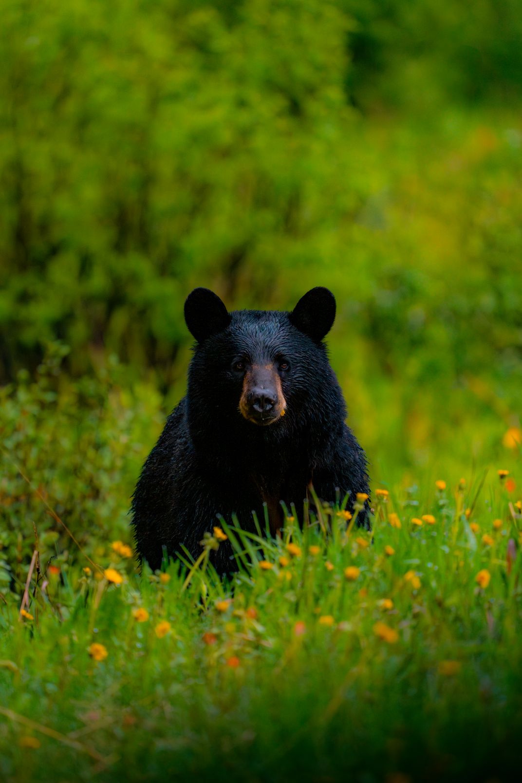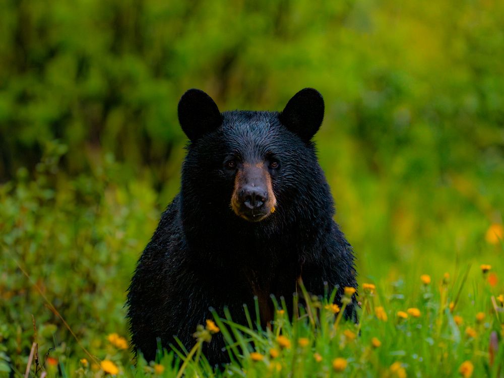 A black bear I saw mid-forage in a field of spring wildflowers in Jasper National Park in Alberta, Canada. Moments like this stay with me the longest; just me and a bear. No fear. No animosity. Just two curious beings locked in each other's gaze, quietly studying one another from a respectful distance.