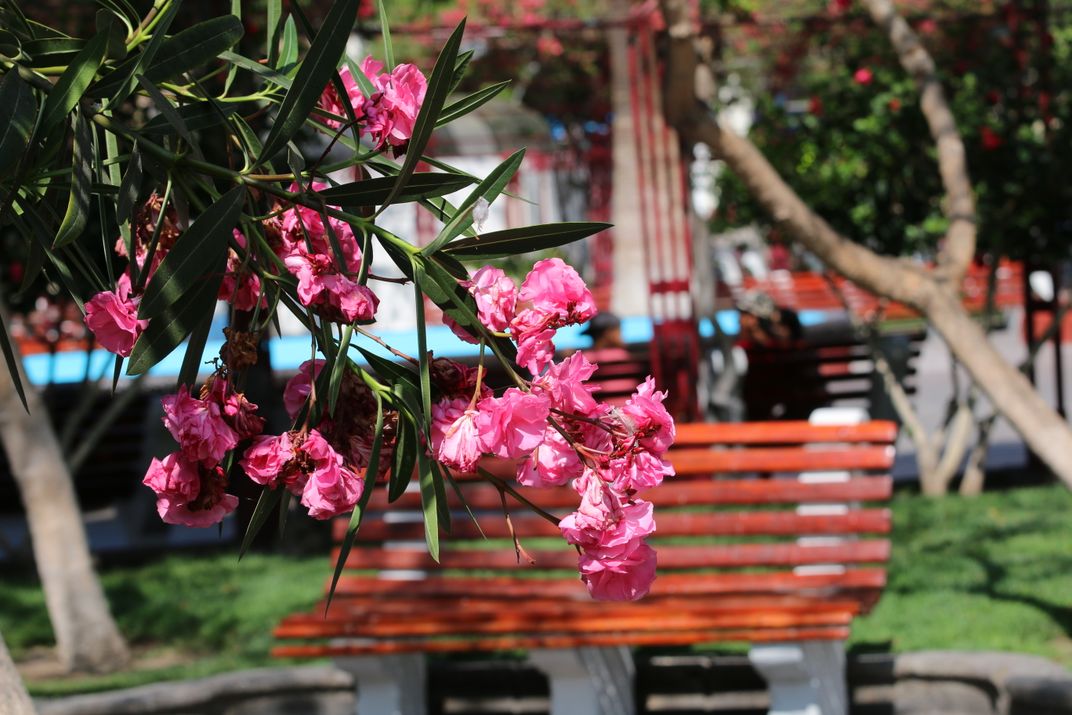 In the barrio centro of Antofagasta is a park called the Plaza des Armas. The name is a reference to weapons (armas), but bears no particular evidence of military might. Instead, it provides a place of beauty, with flowering trees, fountains, and statues.