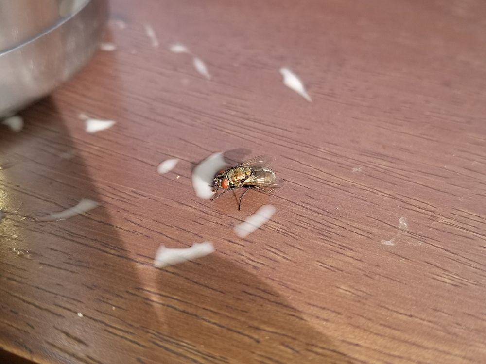 Me and my boyfriend was sitting outside and i bumped the table and spilled coffee, well my boyfriend went in to get napkins then a fly landed and started drinking the coffee. I just thought this was so cool! It shows the details in the fly.