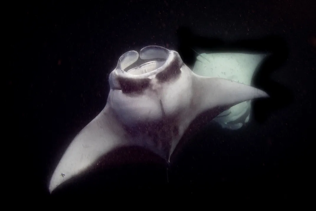 Baa atol - Maldives in the afternoon we spotted some Mantas moving out of Hanifaru MPA, in the open sea were the depth and the light dropping down gave me the chance to create a dark bottom which make the manta sight became more impactful