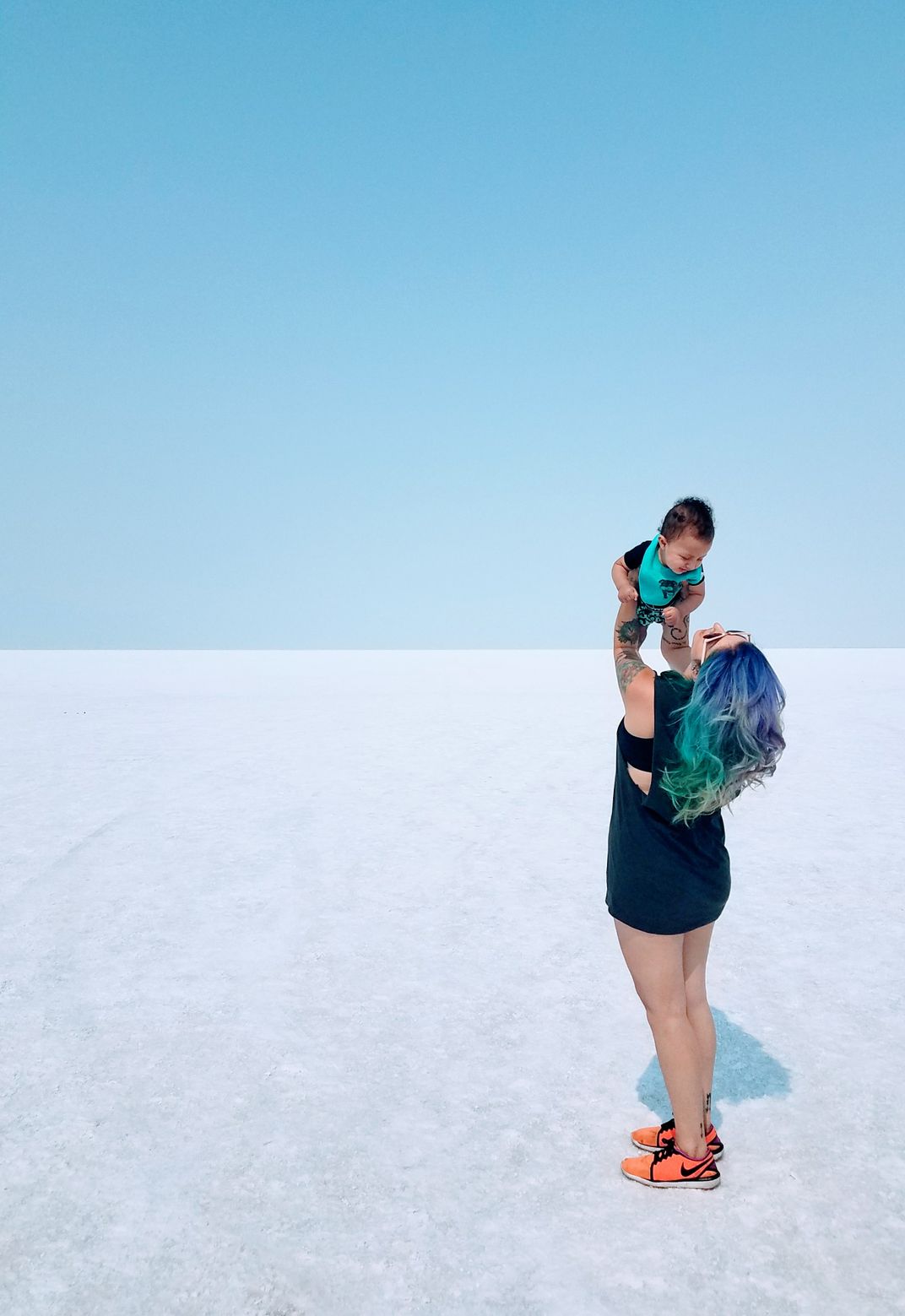 Mother kisses her baby brings, brings him close, then lifts him up to see the beauty that surrounds them. A mother shares another piece of the world with her baby.