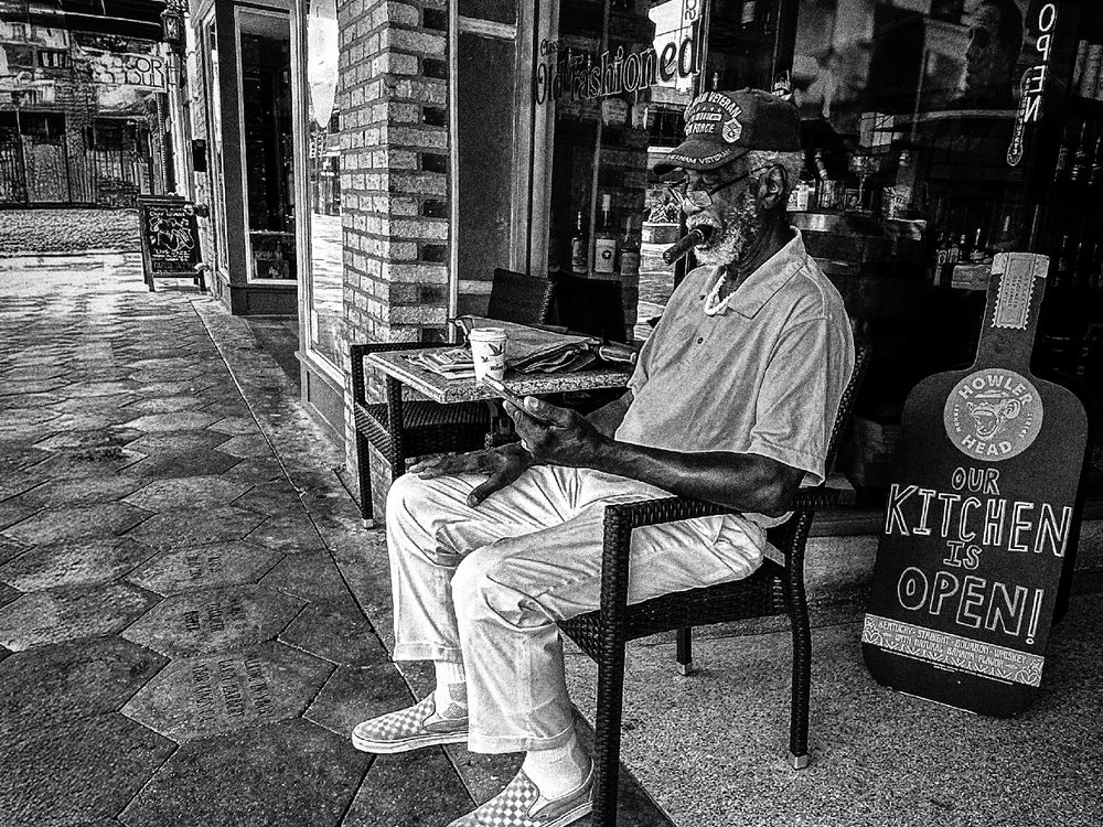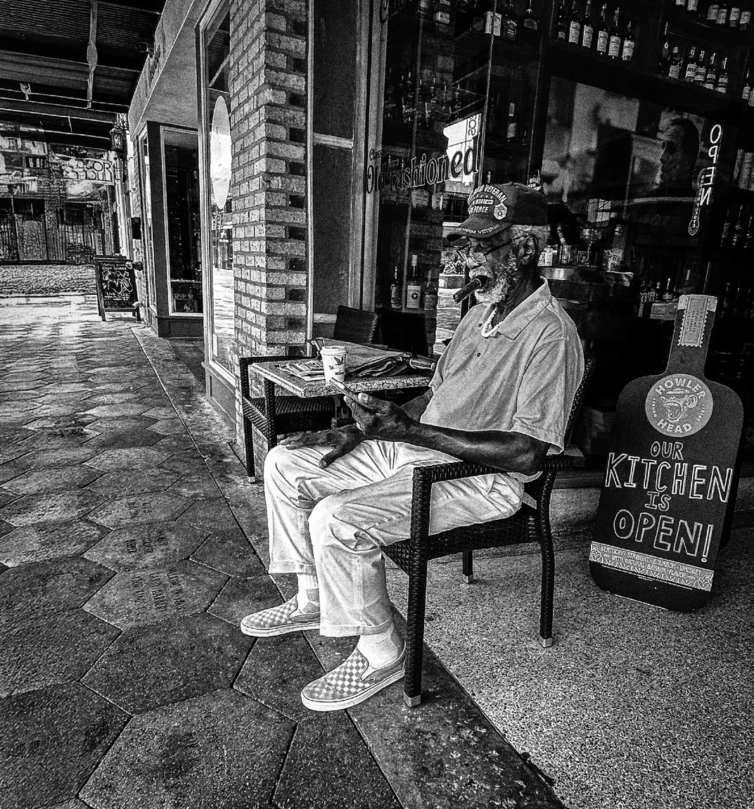 I noticed this man while walking through Ybor City in Tampa, Florida. His relaxed posture and simple routine: Food, cigar, and phone, felt like an authentic glimpse into the culture of the area. The moment captured his quiet ritual and the everyday character that defines this historic neighborhood.