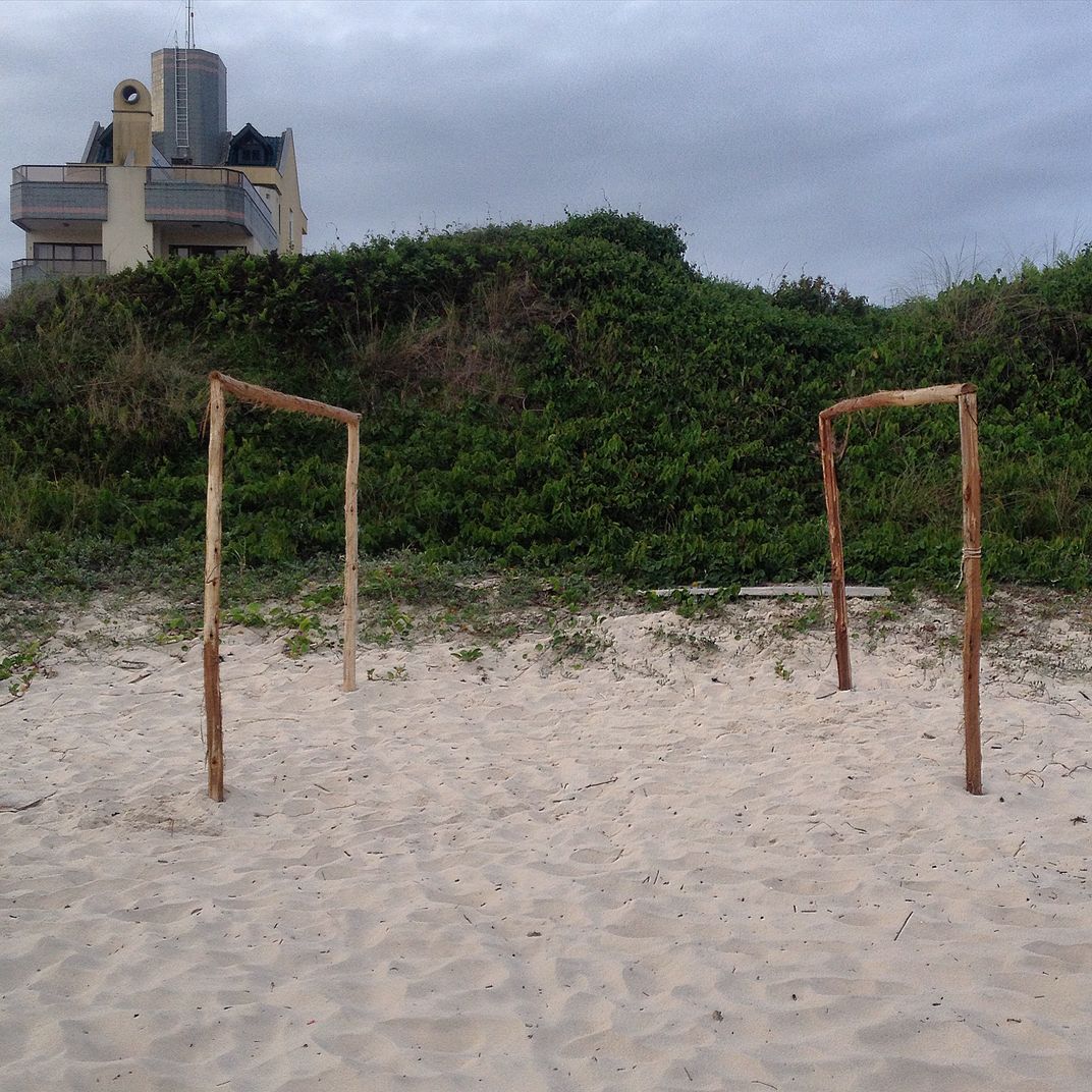 On a beach in Brazil, a too small soccer field to enter more than two players. While I stayed there I did not see anyone playing in.