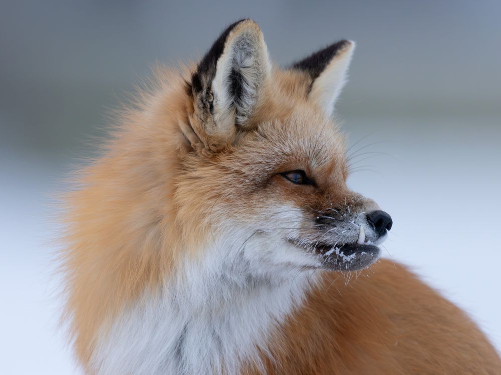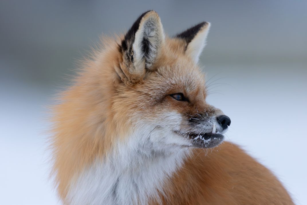 Red foxes are skilled hunters and are equipped with powerful eyesight and acute hearing. This fox has an additional, uncommon feature: an underbite which shows off one of his sharp fangs.