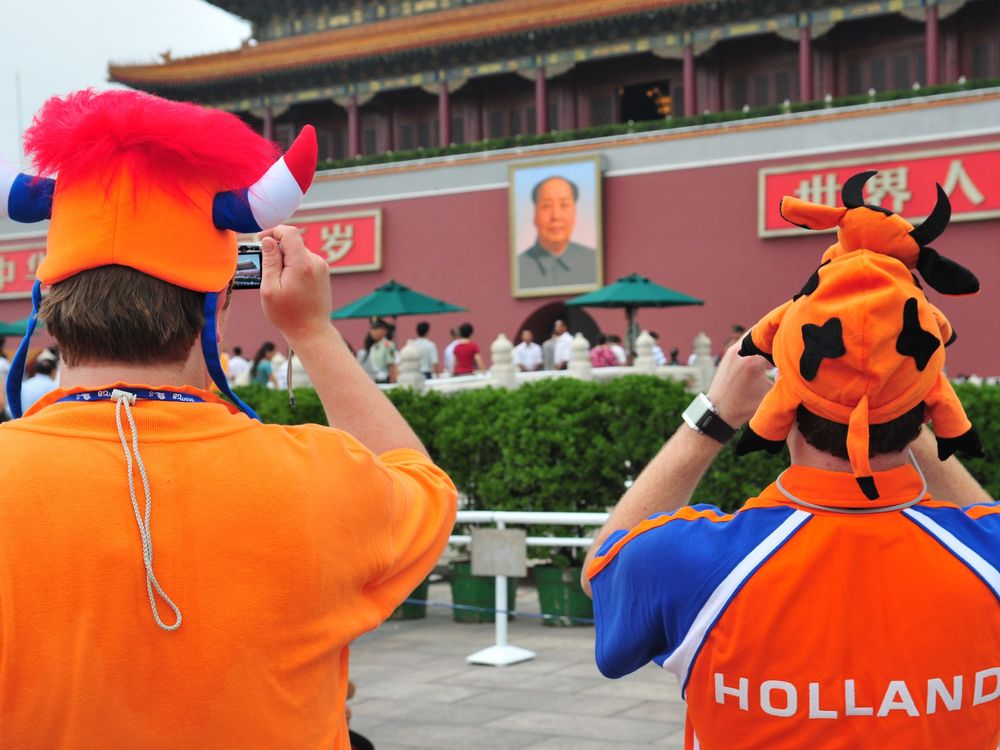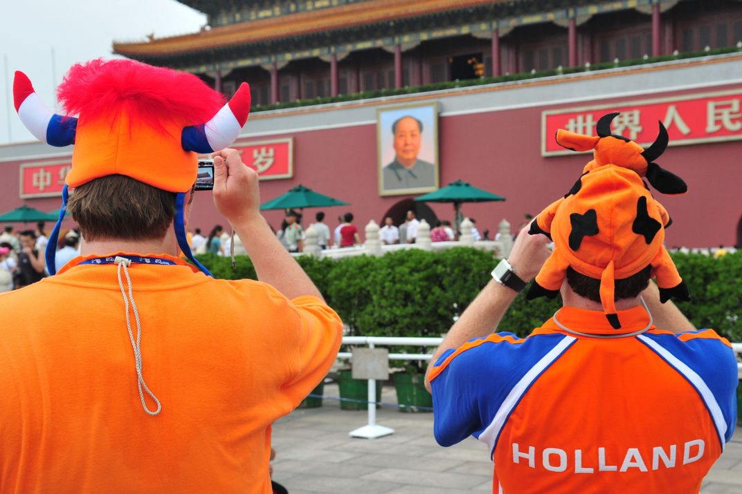 Free and irreverent Olympic tourist in Tienanmen Square.