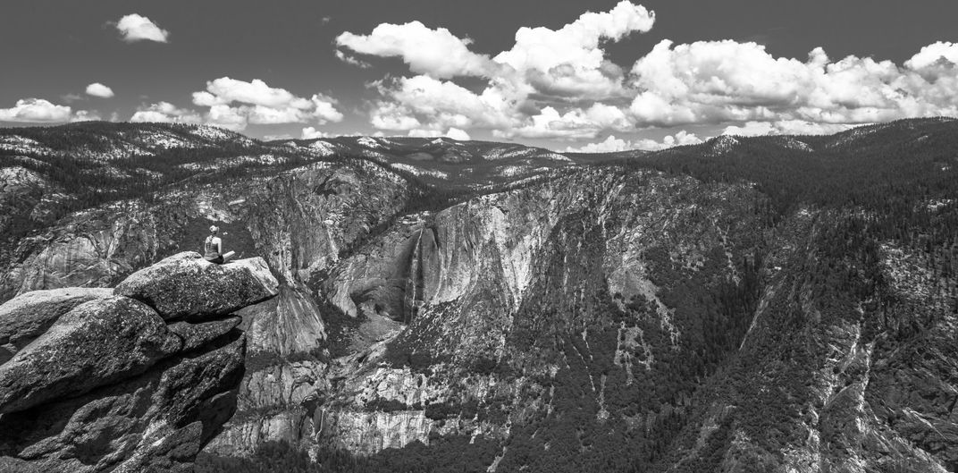 A girl enjoying herself a couple hundred over the ground at Yosemite Valley