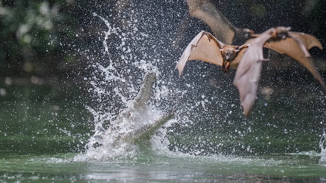 Freshwater Crocodiles Sneak Attack Thirsty Bats from Shallow Waters_0006