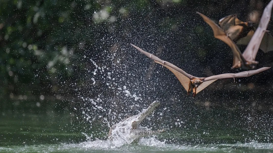 Freshwater Crocodiles Sneak Attack Thirsty Bats from Shallow Waters_0008