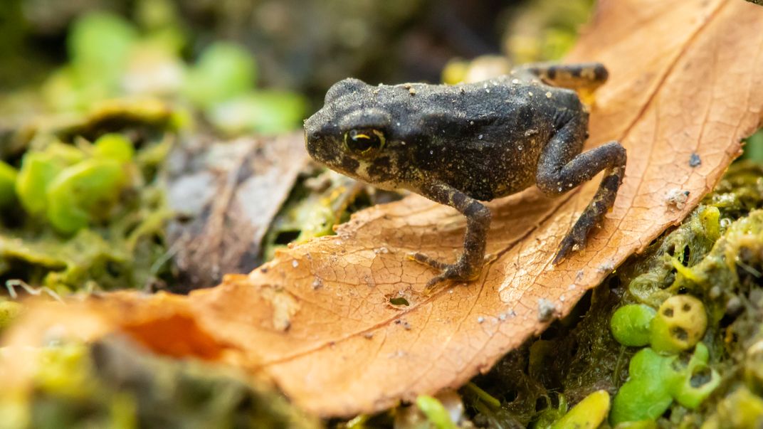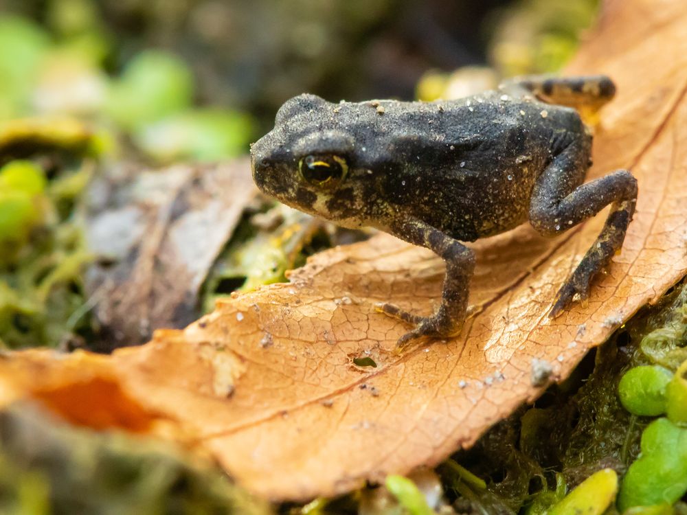 A very, very small frog poised on a leaf. No larger than your thumbnail, he sat patiently observing me. There were hundreds of similar frogs hopping about in this muddy area next the the bay.