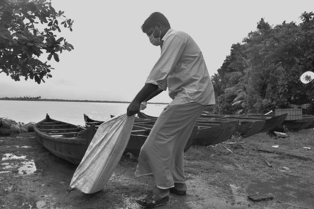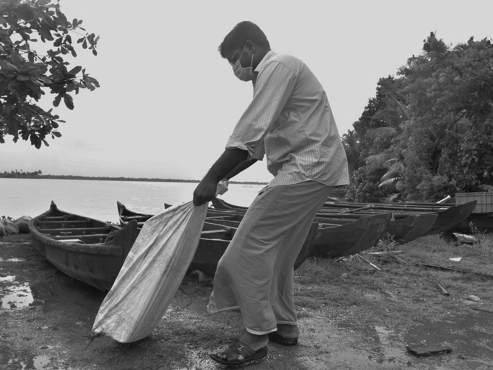 A depiction of Coastal Indian shore where fishing is a prime occupation and thereby people travel on coastlines in boats and take the necessary food and disposing the waste from the waters onto the shores