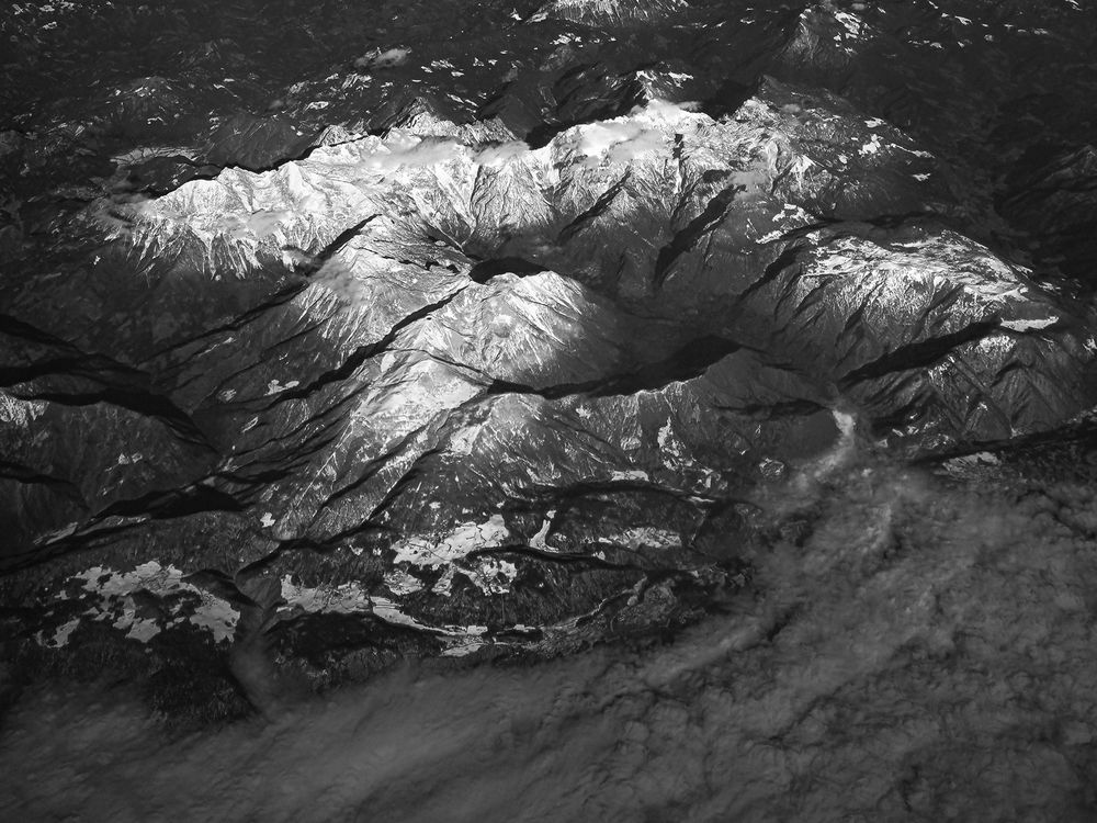 An aerial photo of the Alps during winter taken on a plane ride between the UK and Bulgaria. I have always been fascinated by high views, and if I have the opportunity, I sit by the window when flying in order to admire nature's beauty from above.