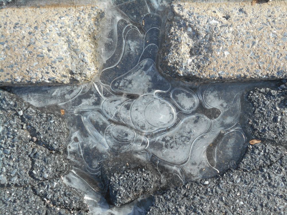 I came upon this frozen puddle while walking to work one very cold morning. I was struck by the swirling designs in the frozen water.