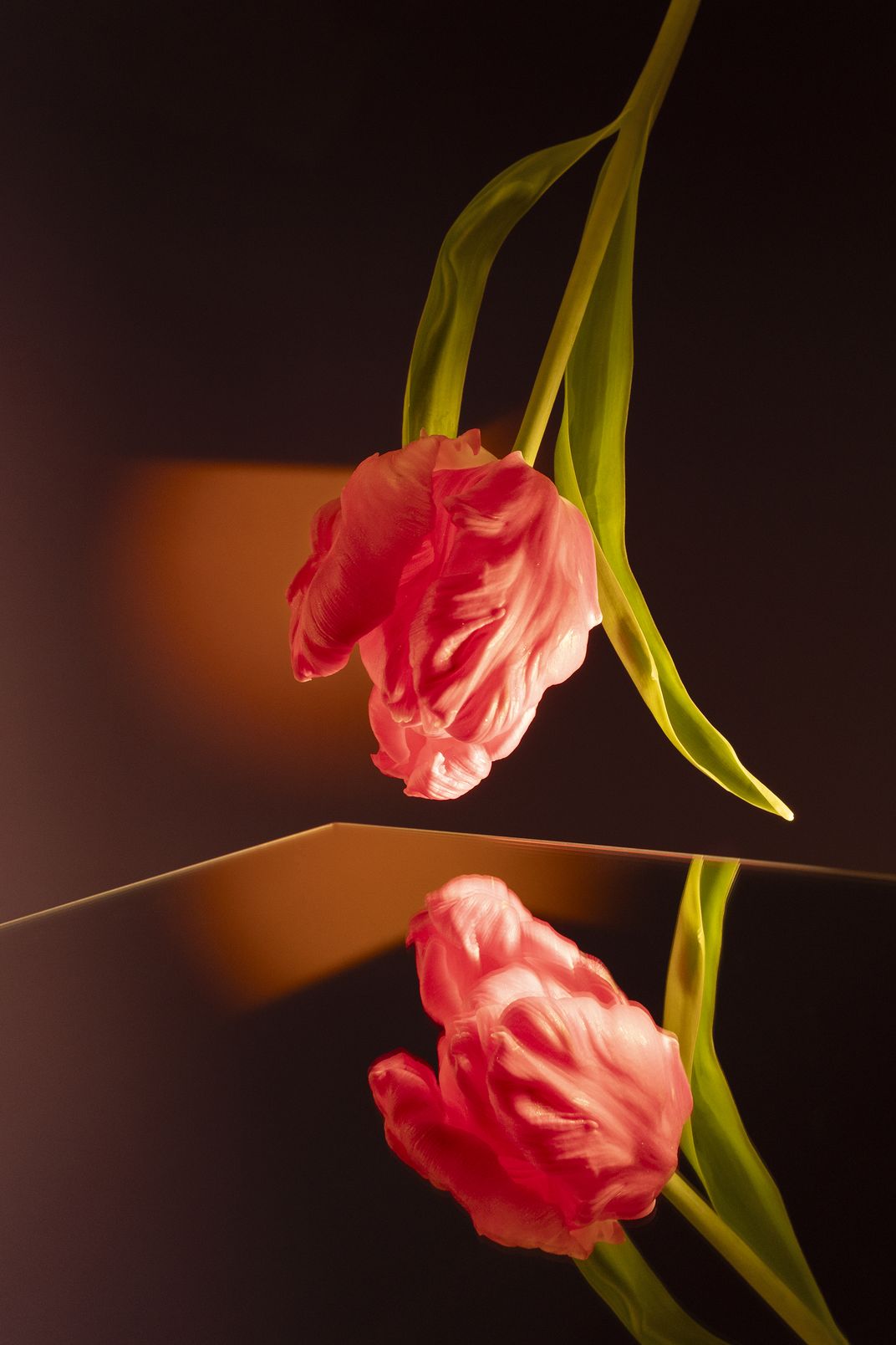 An exploration of surrealism and abstraction, amplifying the colours, shapes, and lines of flowers to rediscover a planetary aesthetic that blurs the boundary between the organic and the inorganic, with lighting and contrast introducing the inorganic element.