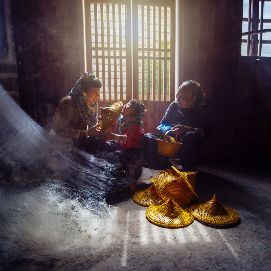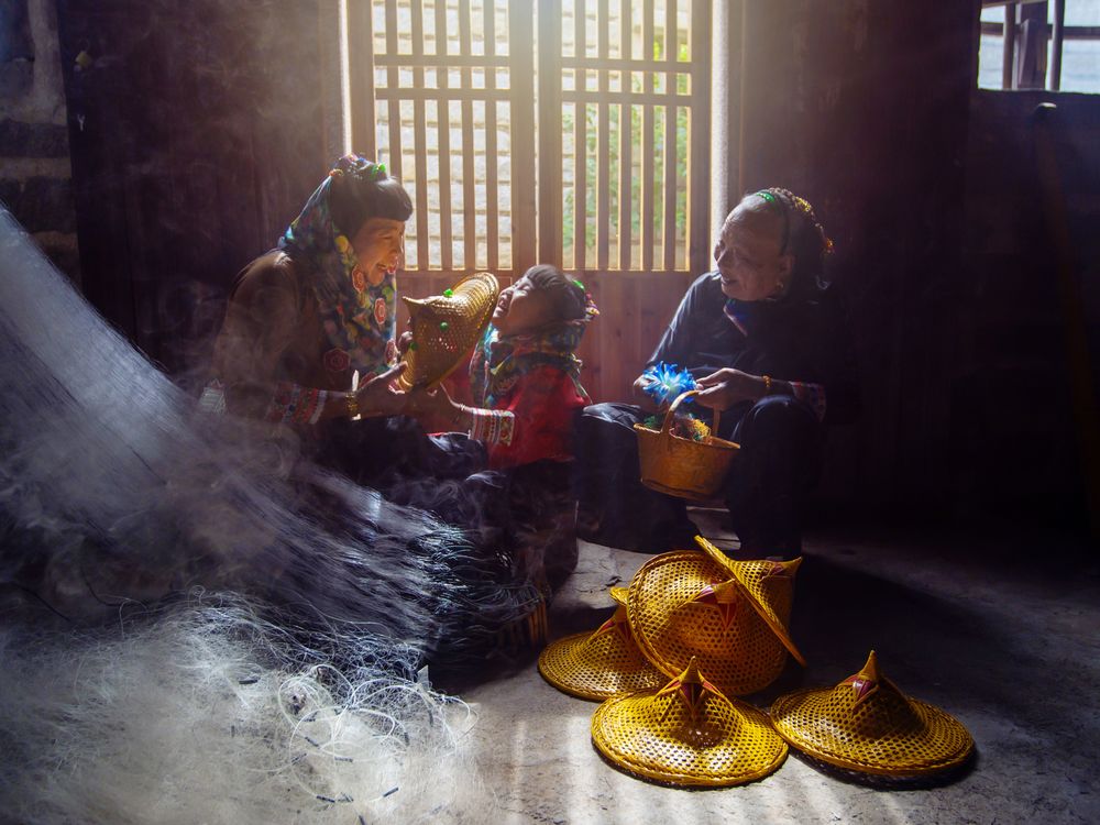 Three generations of grandparents and grandchildren amused their children at home in their spare time. The whole family was happy and laughing.