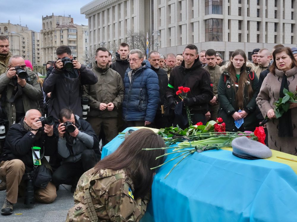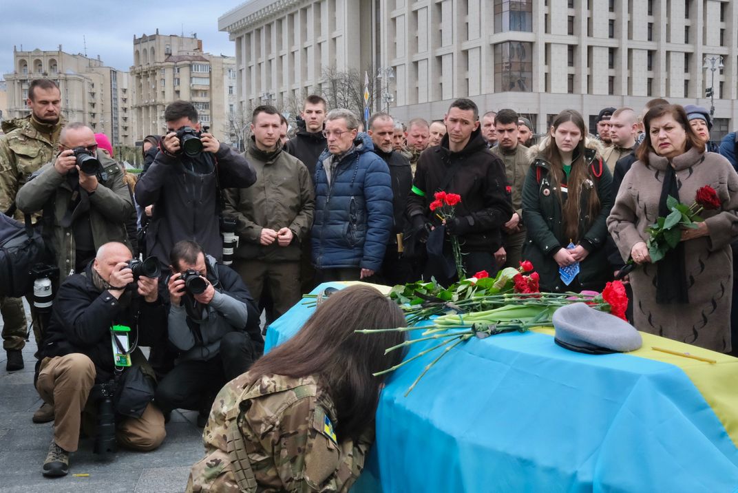 The funeral of a Ukrainian soldier killed in battle.