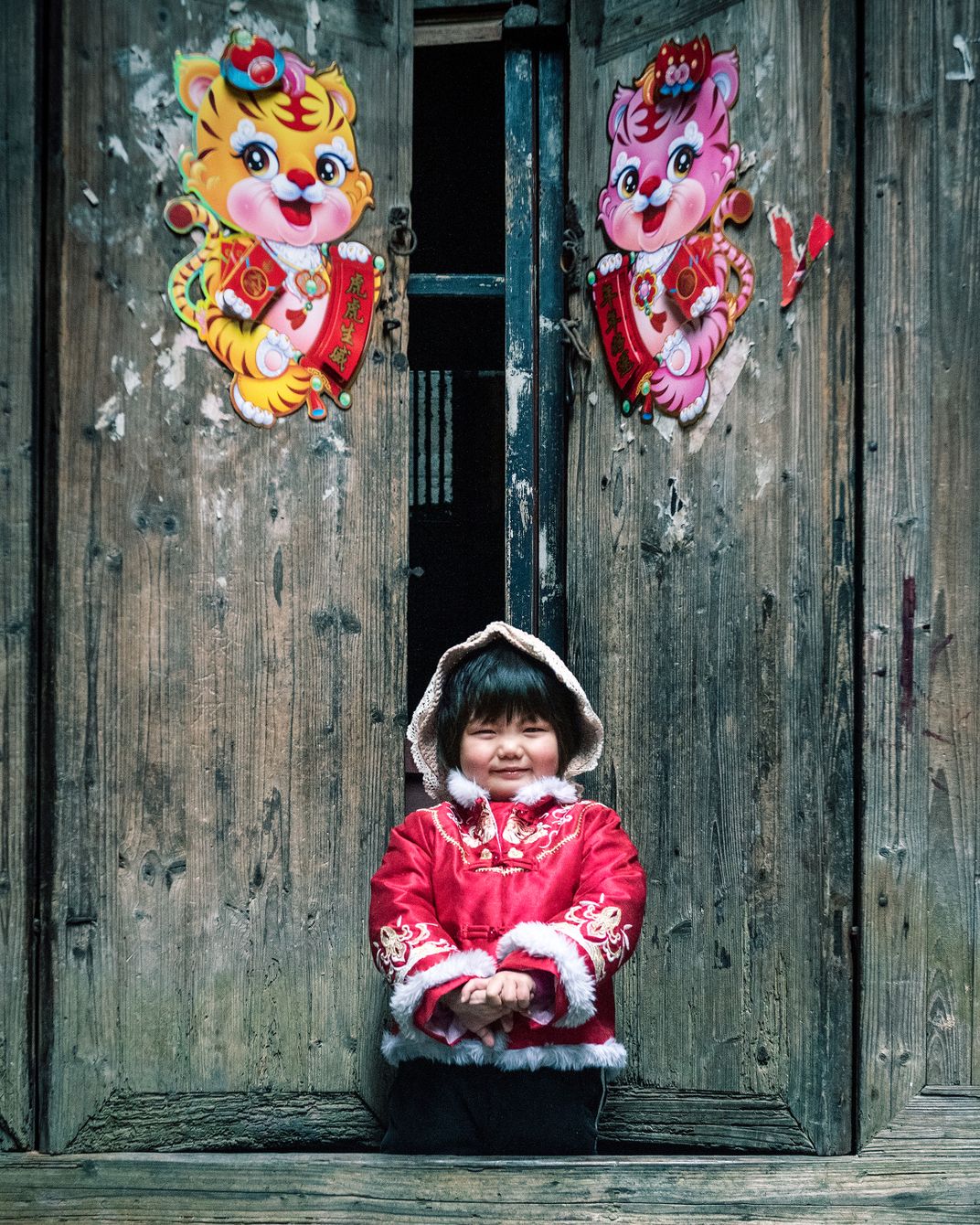 In the Year of the Tiger in the lunar calendar, rural girls “transform into” Fuwa dolls to pay New Year greetings and pray for good fortune and health in the new year. Taken on February 6, 2022, in Yiqian Ancient Town, Guangchang County, Fuzhou City, Jiangxi Province, China.