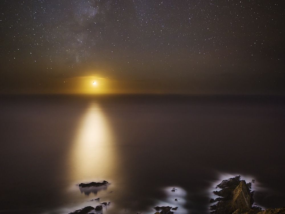 Looking down from the top of hurricane point in Big Sur there is a rock formation below that is one of the most dramatic in all of Big Sur. With a crescent moon providing just enough light for the land yet not bright enough to hide the Galaxy I thought this formation was the perfect location to combine these elements.