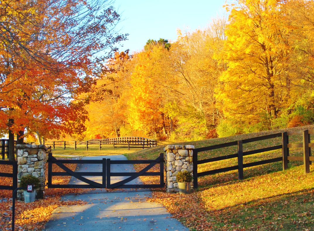 This photo is showing the lines of nature and man combined. The contrast of the colors and the fences reminds the onlooker of the beauty of the autumn.