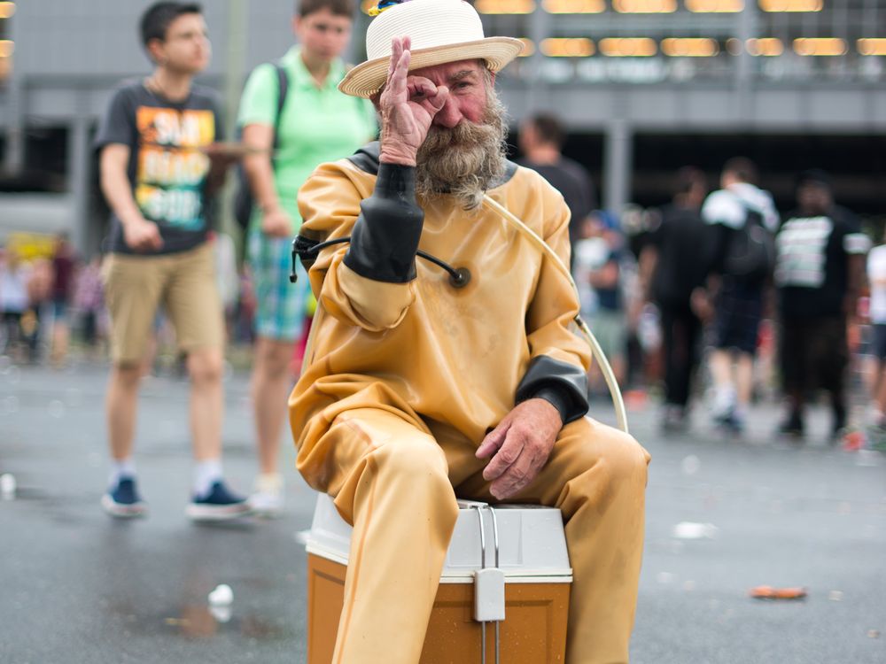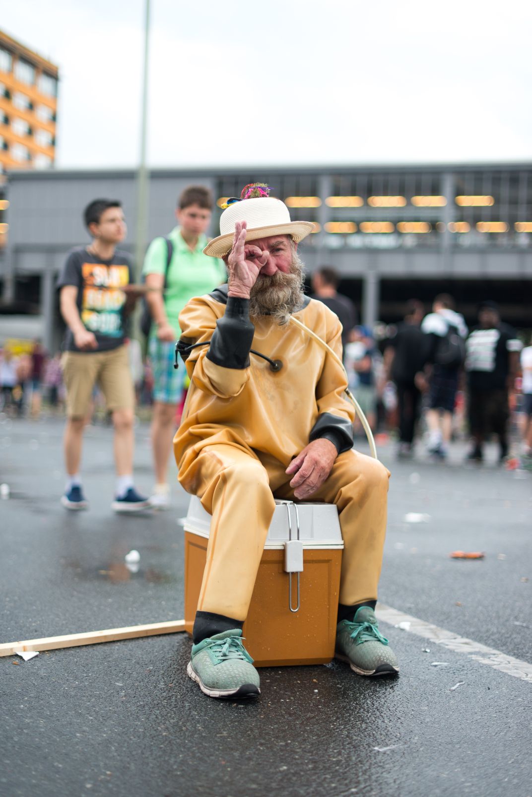 Pride festivals are a place for everyone - even old chaps dressed in diving suits sitting on ice coolers.