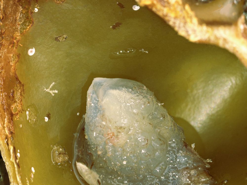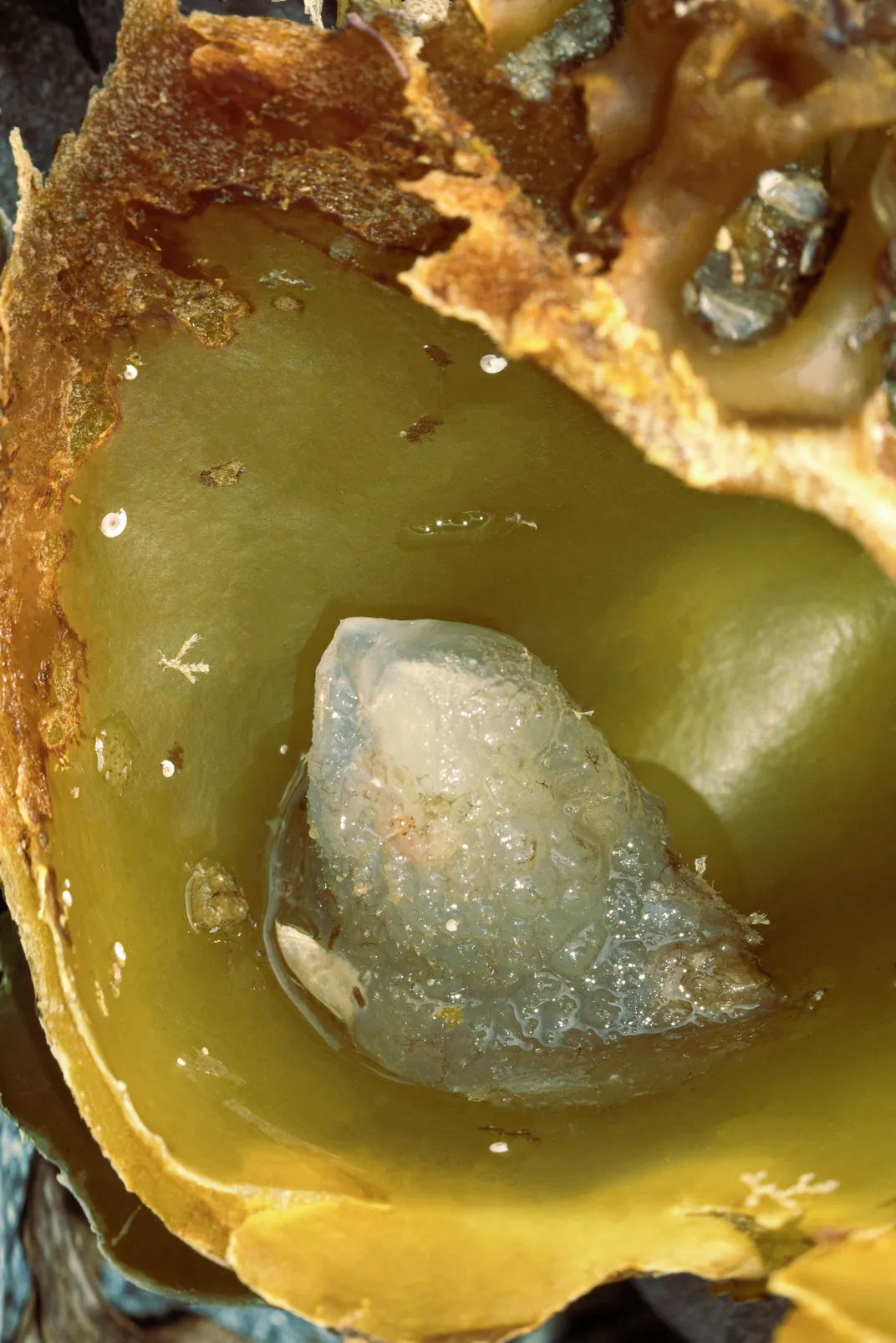 Unknown gel body / cyst, found within thick algae leaves .