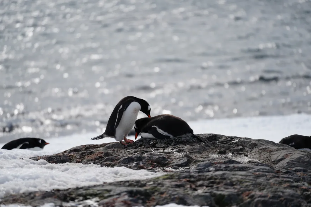 This is a photo taken in Mikkelsen Harbor, a small island on the Antarctic Peninsula, amid the Gentoo Penguin breeding season. November 23, 2024