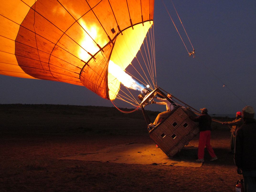 Getting ready for a hot air balloon ride in Masai Mara, Kenya