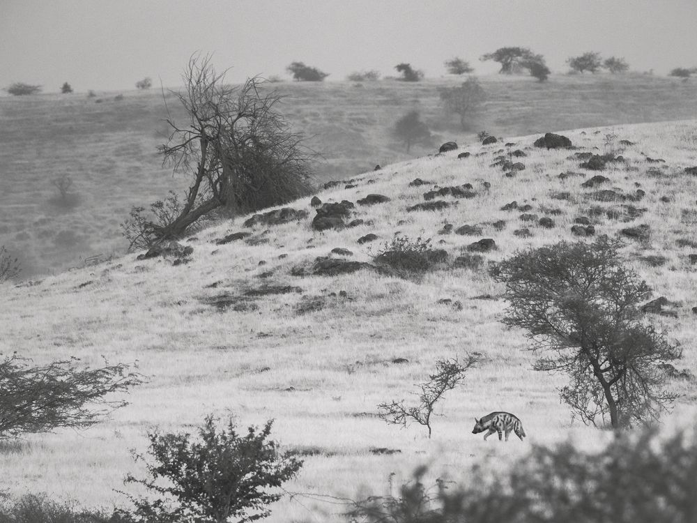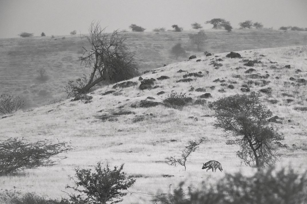 An Indian striped hyena in its element. Grasslands and scrublands in India are disappearing at an alarming rate, yet they remain some of the most overlooked ecosystems. Through this image, I want to highlight not only the beauty of the hyena but also the importance of protecting these fragile habitats and the many species that depend on them.