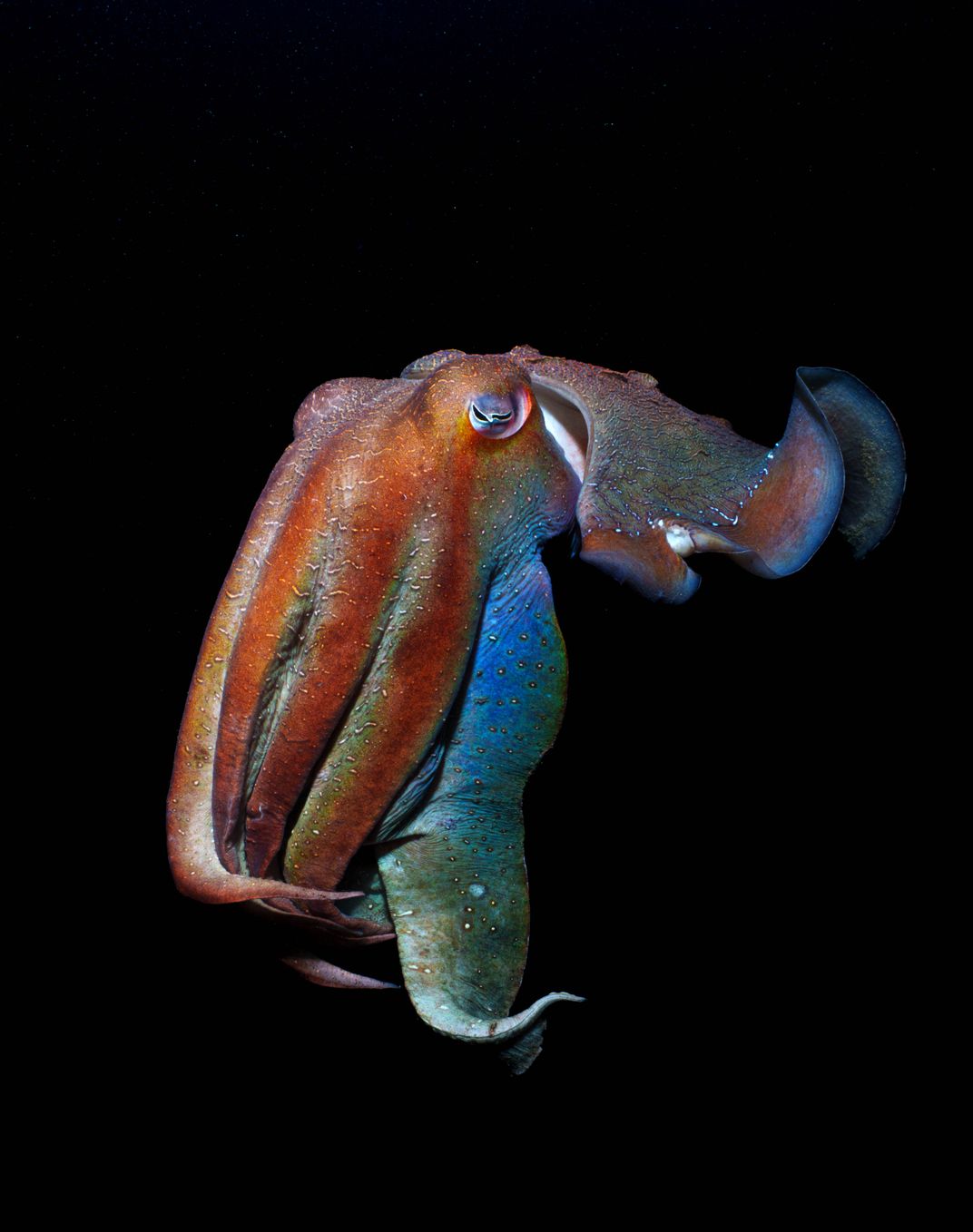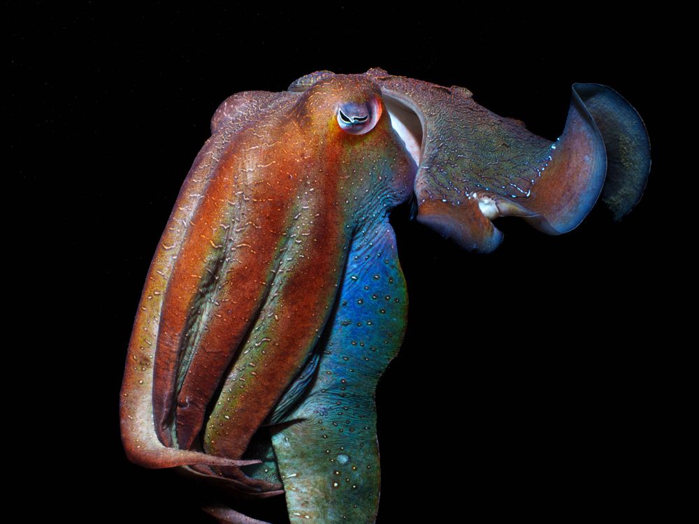 Cabbage Tree Bay Aquatic Reserve is one of few fully protected marine areas around Sydney. A shining light for marine conservation and ecotourism. Australian giant cuttlefish live short, brilliant lives. During breeding season rival males wage regular visual contests to establish dominance, by elongating their bodies, posing aggressively and lighting up their skin with vibrant flashing colours. This cuttlefish paused to pose after such a contest.