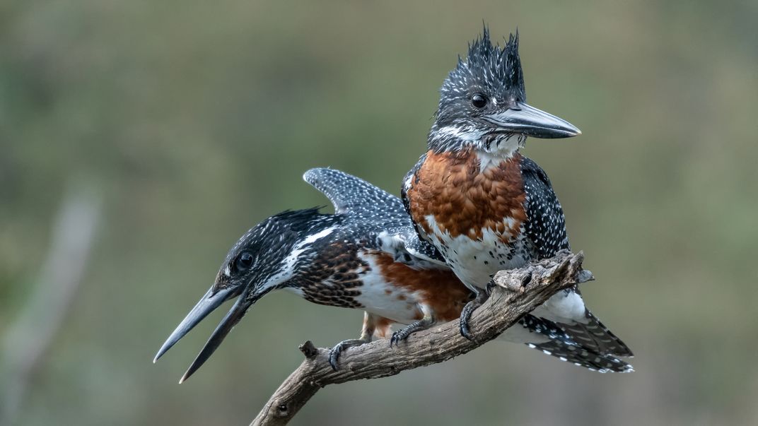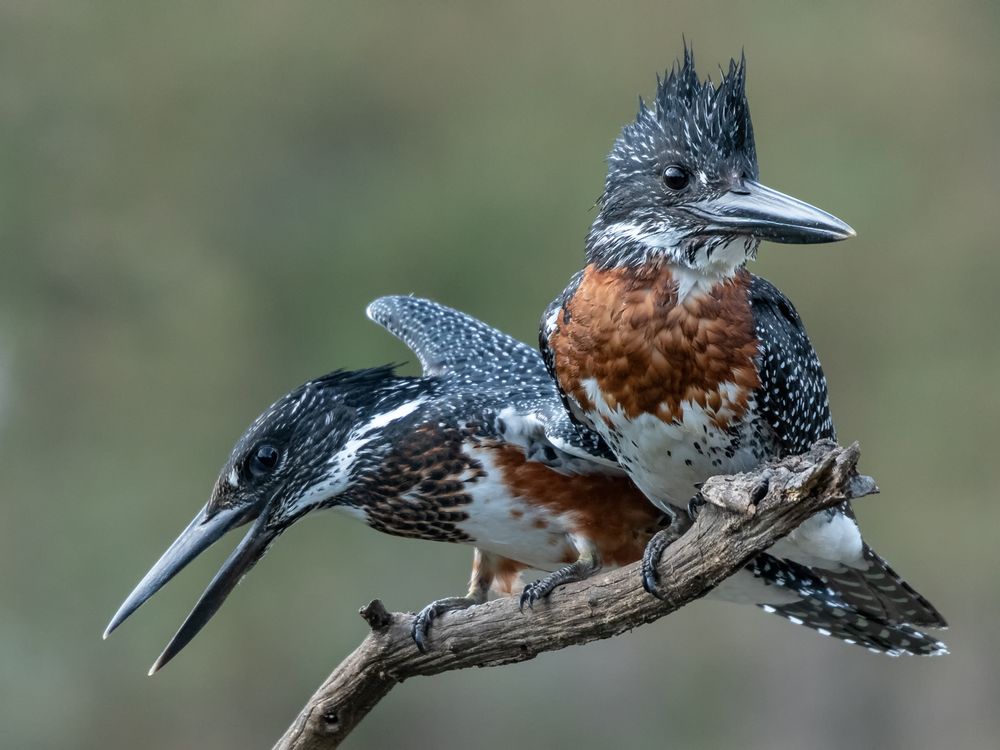 The male adult Giant Kingfisher was sitting on this branch and the juvenile landed next to him and started to push him of the branch to go and fetch food for the juvenile.