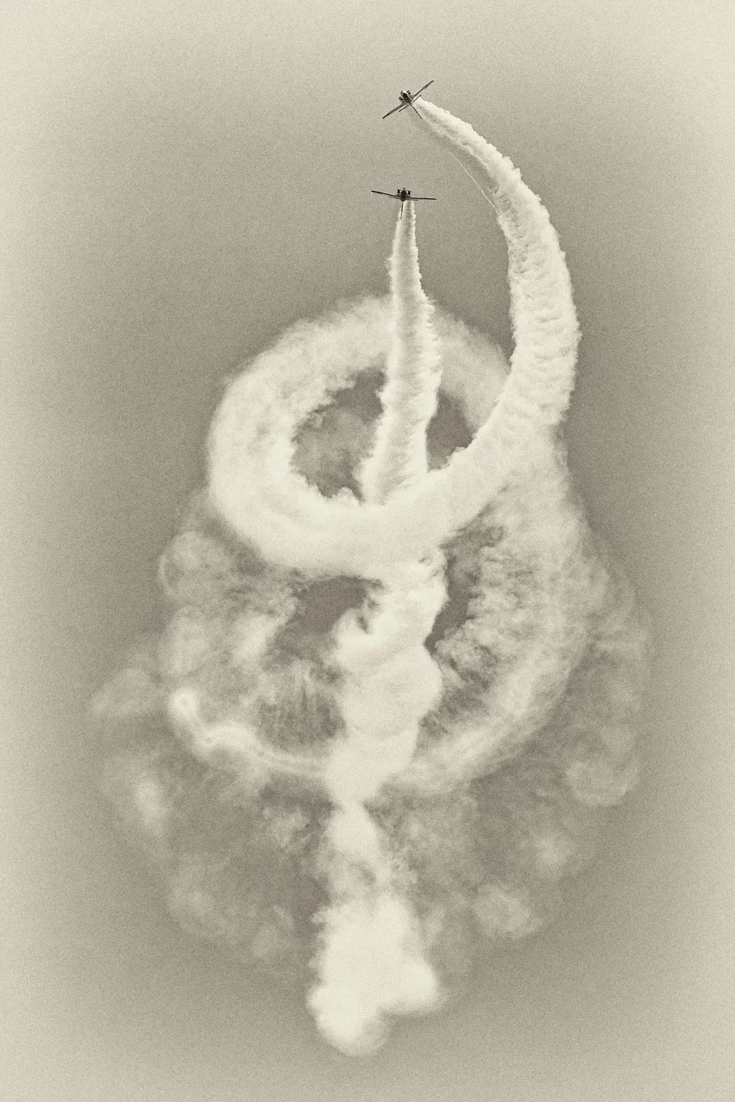 This photo was taken of the Blue Impulse, Japan's acrobatic flying team. They train hard every day, repeatedly experimenting with flight speed, angle, and timing. The show we see lasts about 30 minutes, but behind the scenes, they spend countless hours preparing.