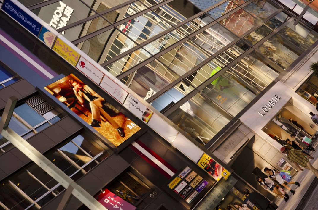 Ginza, Tokyo, Japan, shoppers walk on Chuo-dori past line of stores on Sunday the road is closed to motor traffic