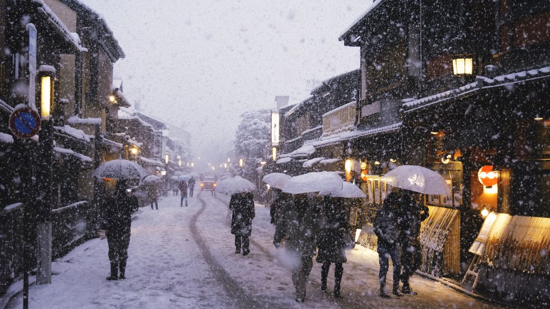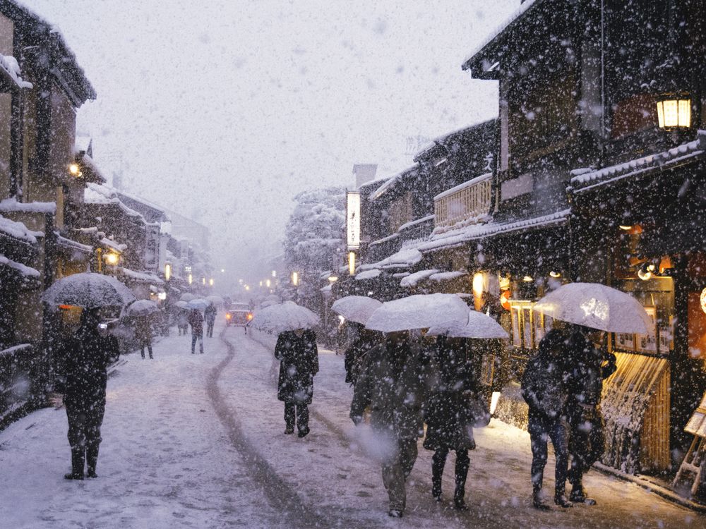 Gion, Kyoto is wonderful place represent an old fashion of japan citystyle. I visited last year and found it a beautiful place. With snows and light and people and umbrellas, I loved it.