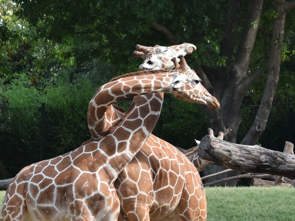 Giraffes going neck-to-neck at the Fort Worth Zoo