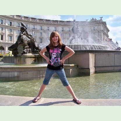 girl at fountain in Republic Plaza, Rome