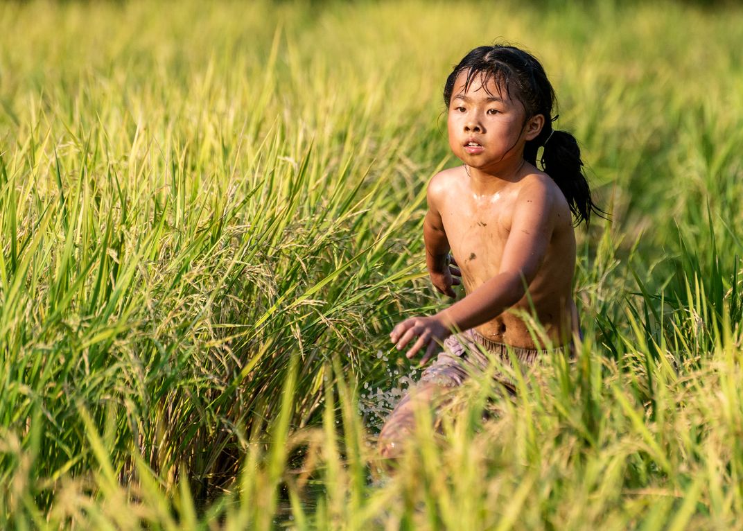 In order to catch fish in the rice fields, the little girl ran happily back and forth in the rice fields, her little face flushed, full of anticipation and excitement. Taken on June 26, 2022 in Yangxi Township, Guangchang County, Fuzhou City, Jiangxi Province, China.