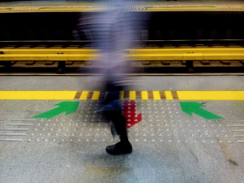 The young girl goes on the subway