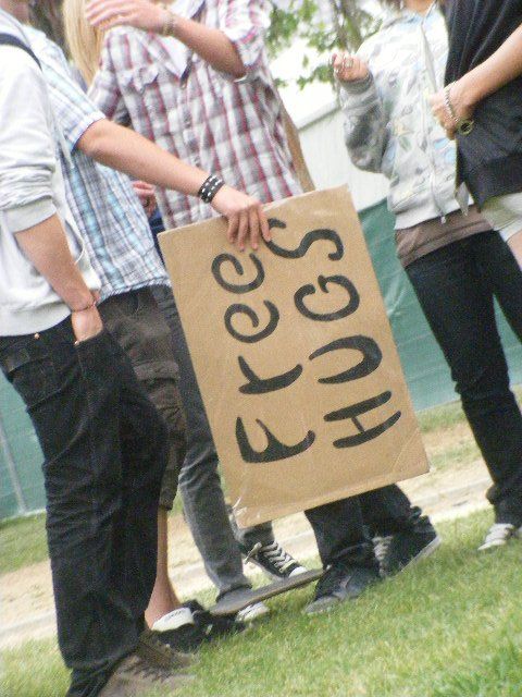 Giving out free hugs to anyone who needed one