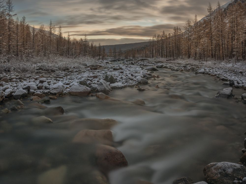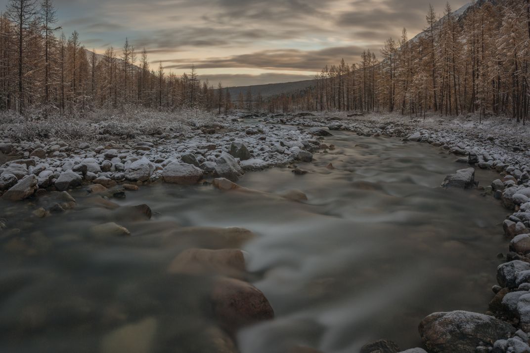 Aktru river valley, Altai republic, Russia. September 2016. Aktru river valley lies among Altai mountains. Most part of this region is classified as a UNESCO World Heritage Site.