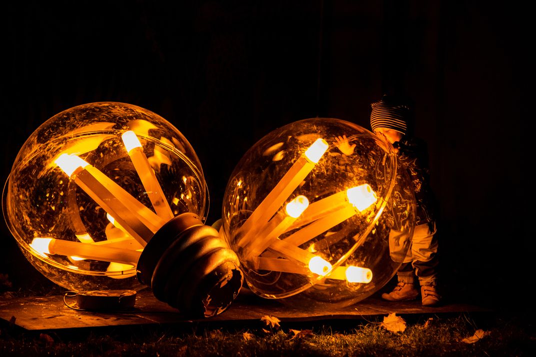 Glühbirnen, das Foto ist auf einem Stadtfest entstanden. Das Kind war sehr fasziniert von dem Leuchten dem Lampen.