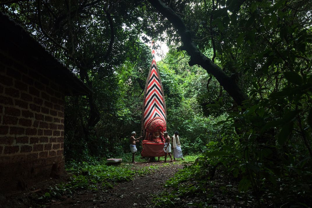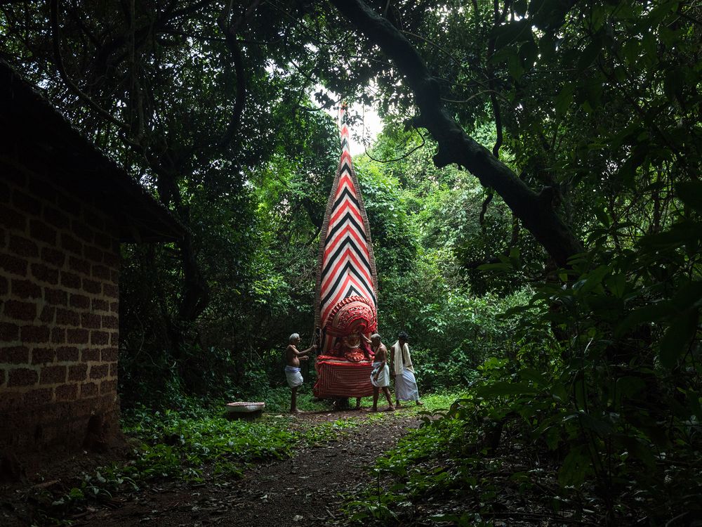 Neeliyar Kottam is a sacred grove in Kannur district, Kerala, India, situated at Mangattuparamba near Dharmasala. At present, this sacred grove is controlled by members of Cheriya Veedu family belonging to the Kulala community. Neeliyar Kottam still preserves the jungle surroundings. Its sanctum is not roofed. When the ritualistic Theyyam performance is seasonal elsewhere, the belief is that the Goddess graces the Neeliyar Kottam grooves whenever a devotee makes an offering. The Theyyam costume consists of large blood-red clothes, with a 20 ft bamboo framed headgear and traditional Theyyam ornaments. Artists of Vannan community performs the Theyyam of Neeliyar Bhagavathi or the Ottathira