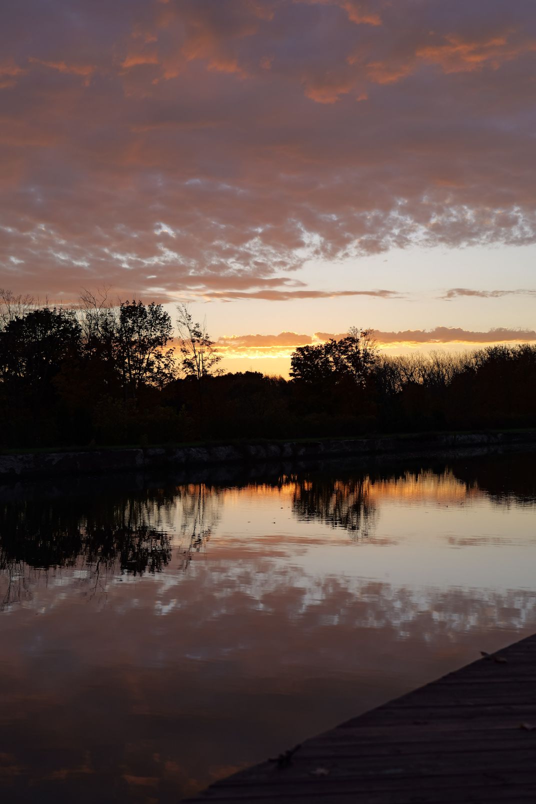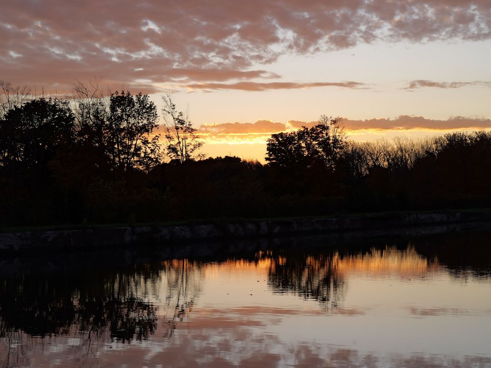 Erie canal beloe a golden sunrise. A play on reflection, I was heading to work and with the sunrise and clouds thought it was a good opportunity to get a beautiful shot of the canal.