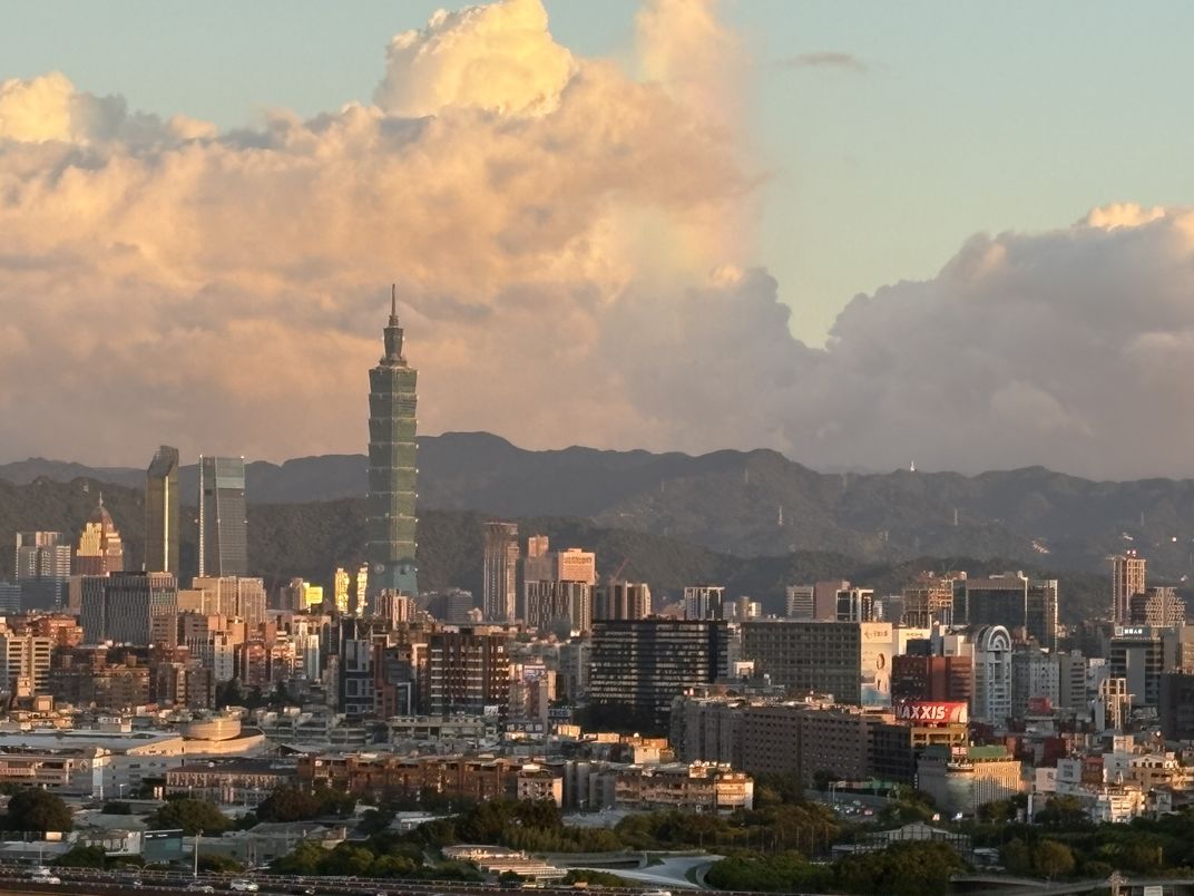This photo captures Taipei 101 standing tall against a warm sunset glow, with the city quietly settling into the evening. I took this shot while watching the sunlight paint the clouds gold, creating a calm moment above the busy streets below.