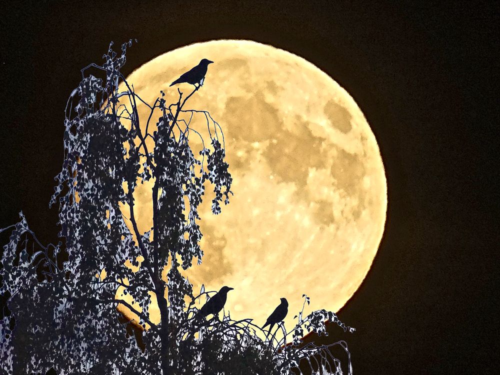 I knew, that on October 17th 2024 there would be a so called "supermoon" and I thought of a special image for which I shot a day before crows in the trees awaiting the night.