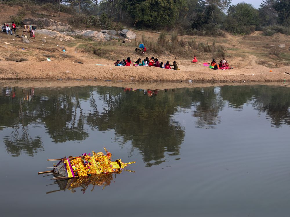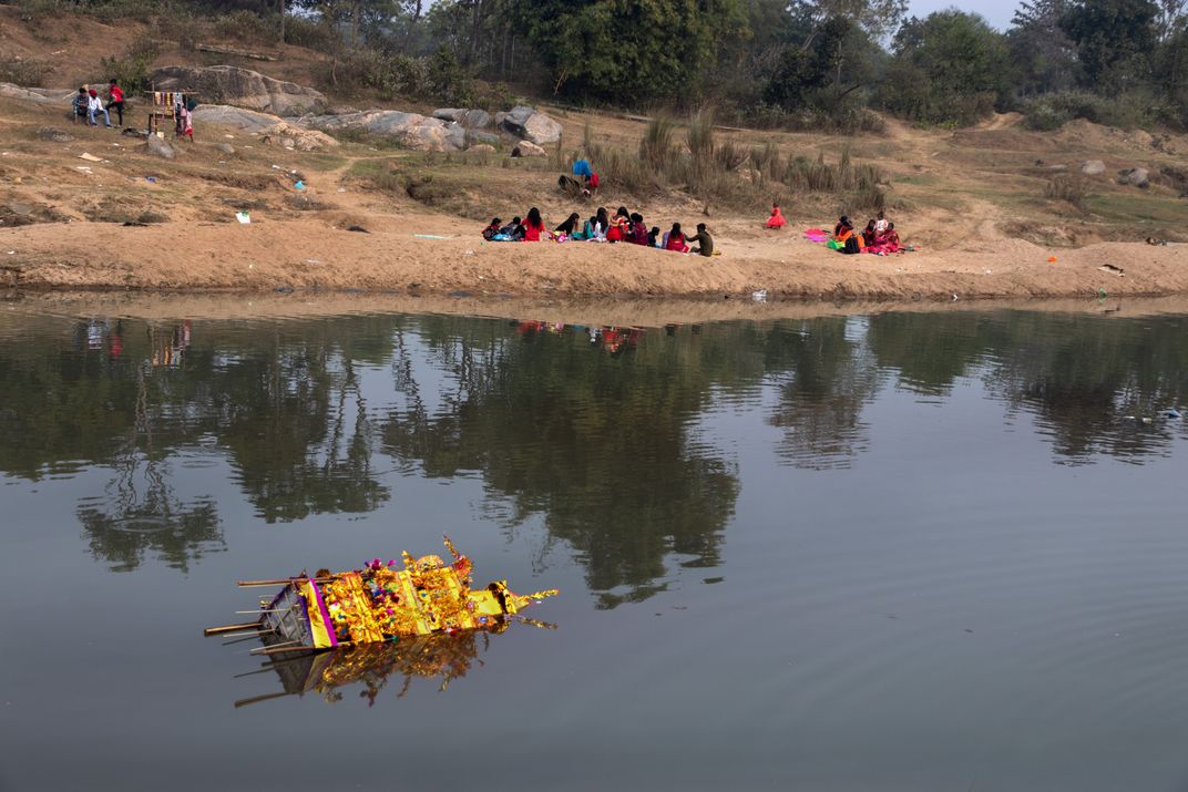 A moment of reflection as the vibrant Tusu idol-Chaudal,a rectangular structure made of bamboo and colored paper. Tusu is a harvest festival and is considered one of the largest village festival in West Bengal, India.The festival starts on mid december and continues to the mid of January. The festival concludes with the immersion of the decorated Choudal in a river.
