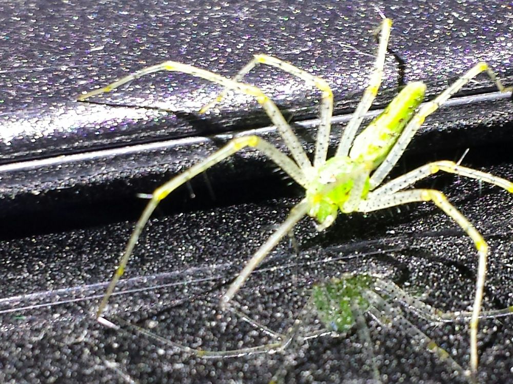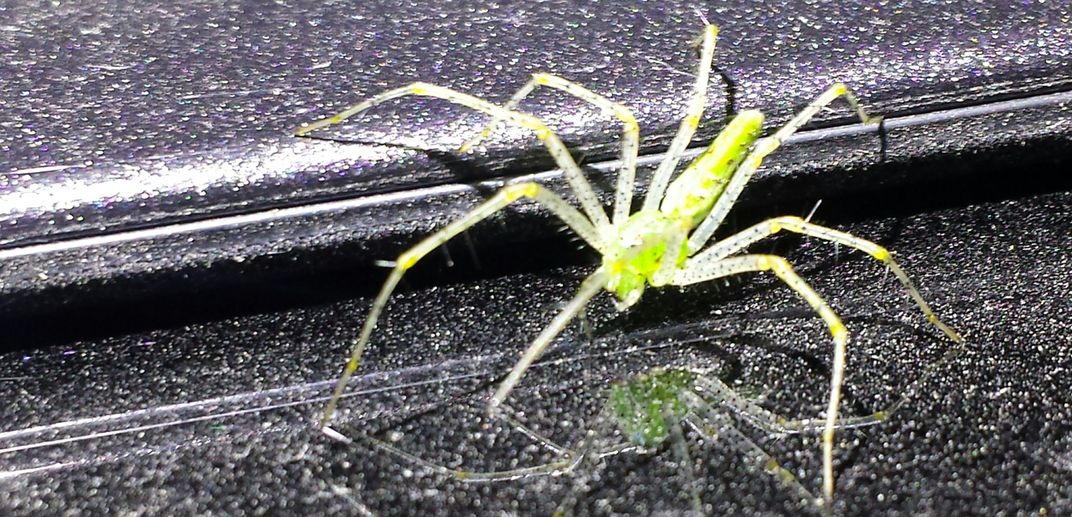 One of many spiders hanging around inside of railcars waiting to say, "Hey, Good Morning."
